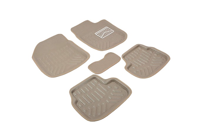 Carvito 3D Car Floor Foot Mats for Maruti Suzuki Wagon R (2010-2018) - Complete Set of 3 Pieces | Top-Notch PVC Material | Washable | Beige
