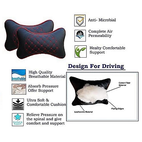 neck rest is made of premium quality ergonomic cotton cushion and leatherette