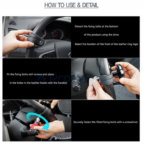 Carvito Blacksuit Handmade Leather Hook Universal Power Handle Steering Wheel Spinner Knob