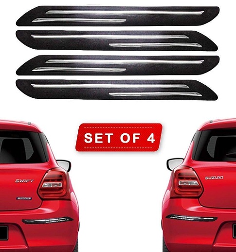 Carvito Car Bumper Protector Guard with Double Chrome Strip For All Car 4Pcs