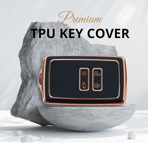 TPU Key Cover Compatible with Renault Triber | Kiger Smart Key (Black) |