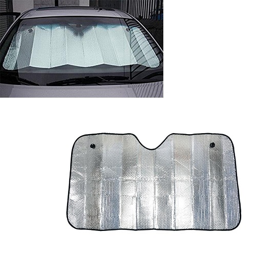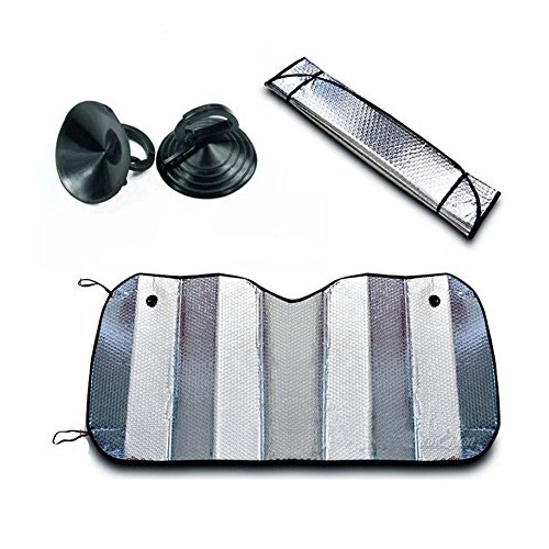 • Silver color foldable sunshade, during the hot sun's day, holds up shade for your car.