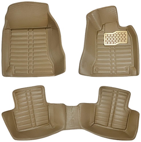 Carvito 3D Car Floor Foot Mats for Maruti Suzuki Wagon R (2010-2018) - Complete Set of 3 Pieces | Top-Notch PVC Material | Washable | Beige